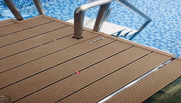 Sàn gỗ nhựa cũng rất thích hợp cho việc lát sàn quanh hồ bơi.