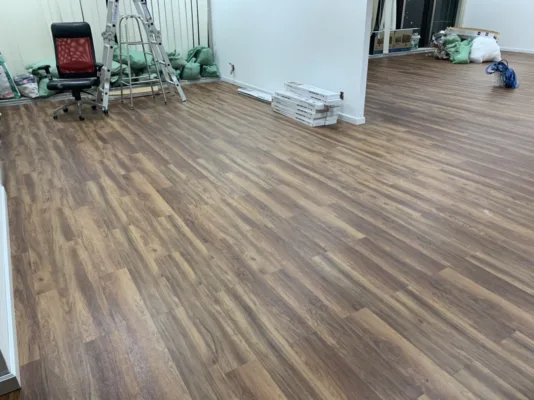 Thi công sàn nhựa giả đá là quá trình lắp đặt loại vật liệu sàn